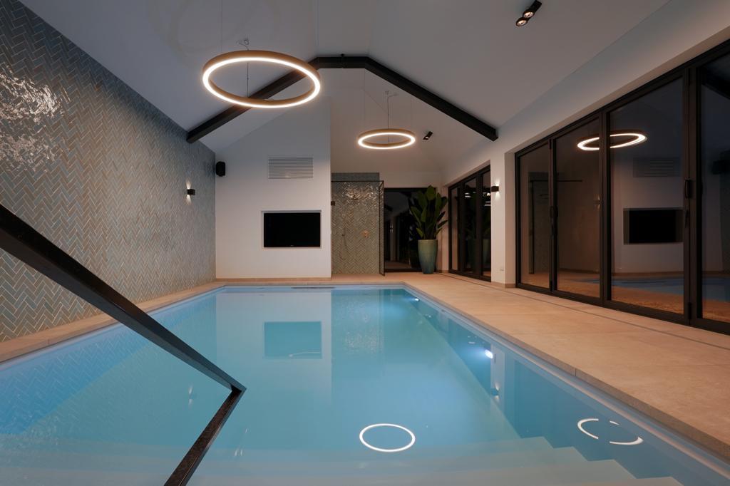 Het zwembad betreft een Starline NOVA-line van maar liefst 12 meter lang, een maatwerk sauna en een inbouw spa van het enige en echte merk Jacuzzi.
